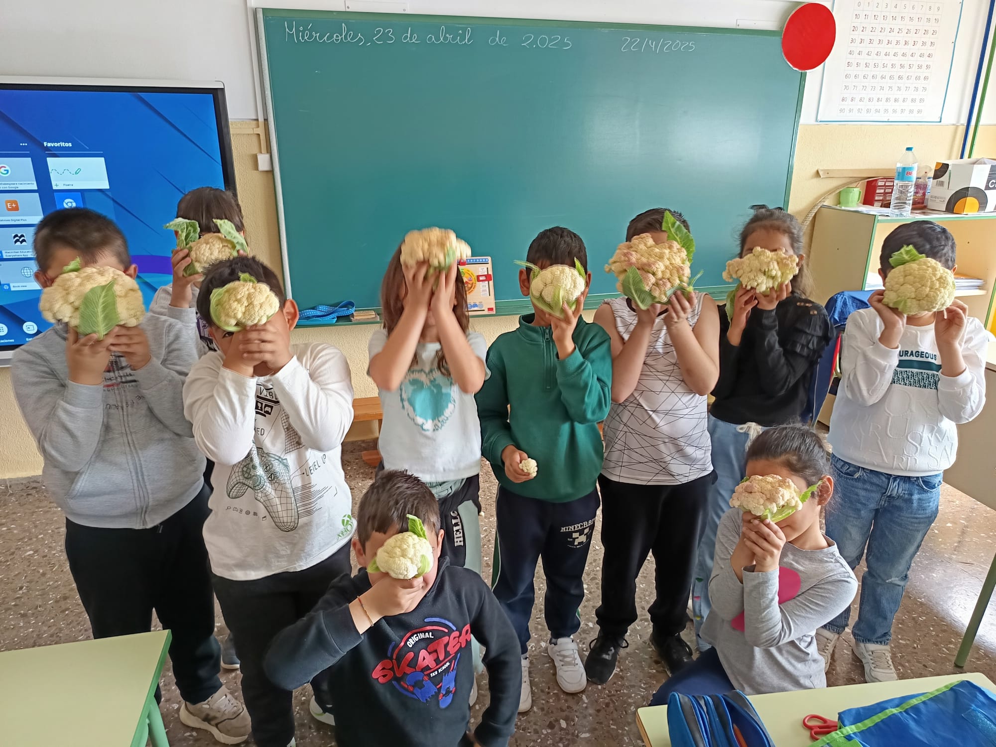 Los chicos de segundo y cuarto recolectan en el huerto (abril de 2025)